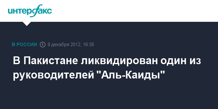 Исламабад. 9 декабря. INTERFAX.RU - В результате атаки американского беспилотника в Пакистане погиб высокопоставленный руководитель террористической организации "Аль-Каида" Абдель Рахман аль-Хуссейнан, сообщает в воскресенье "Ассошиэйтед пресс" со ссылкой на источники в разведслужбах Пакистана.