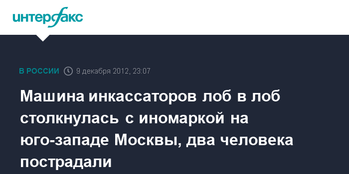 Машина инкассаторов лоб в лоб столкнулась с иномаркой на юго-западе Москвы, два человека пострадали