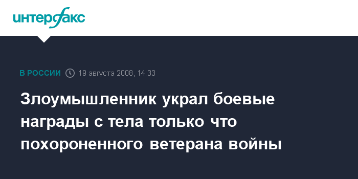 Астрахань. 19 августа. INTERFAX.RU - Лиманский районный суд Астраханской области вынесен приговор жителю села Забурунное, который осквернил могилу ветерана Великой Отечественной войны, чтобы похитить боевые медали.