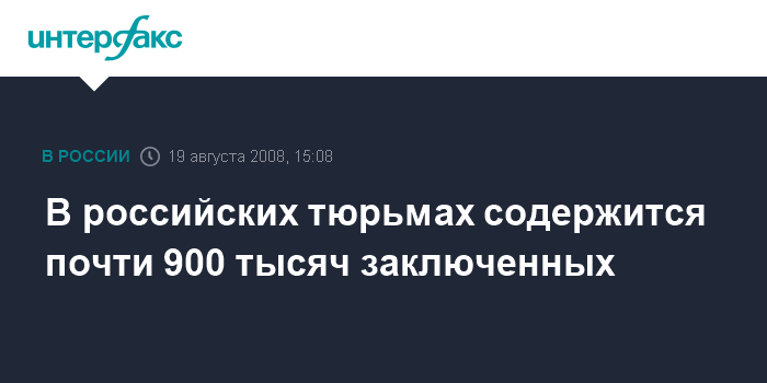 В российских тюрьмах содержится почти 900 тысяч заключенных