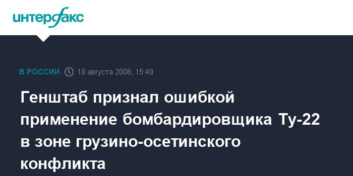 Москва. 19 августа. INTERFAX.RU - В российском военном руководстве признают, что применение дальнего бомбардировщика Ту-22 в зоне грузино-осетинского конфликта было не верным.