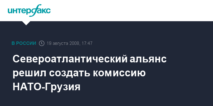 Брюссель. 19 августа. INTERFAX.RU - В североатлантическом совете НАТО принято решение о создании комиссии НАТО-Грузия.