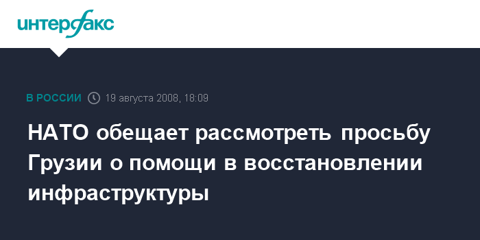 НАТО обещает рассмотреть просьбу Грузии о помощи в восстановлении инфраструктуры