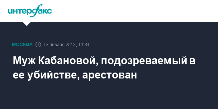 Москва. 12 января. INTERFAX. RU - Головинский суд Москвы арестовал Алексея Кабанова, подозреваемого в убийстве своей супруги, тело которой накануне было найдено в багажнике автомобиля, сообщил "Интерфаксу" официальный представитель столичного управления СКР Сергей Стукалов. "Суд удовлетворил ходатайство следствия об избрании в отношении А.Кабанова меры пресечения в виде заключения под стражу", - сказал С.Стукалов в субботу "Интерфаксу".