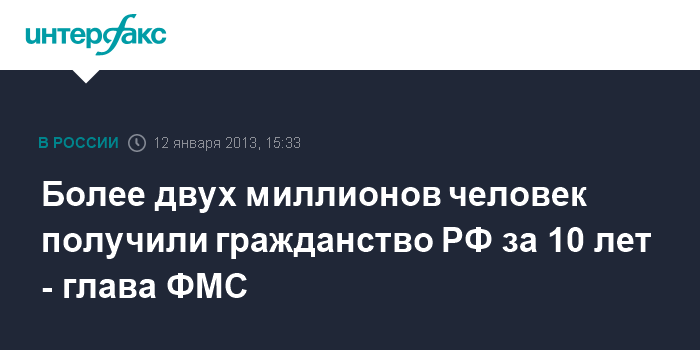 Более двух миллионов человек получили гражданство РФ за 10 лет - глава ФМС