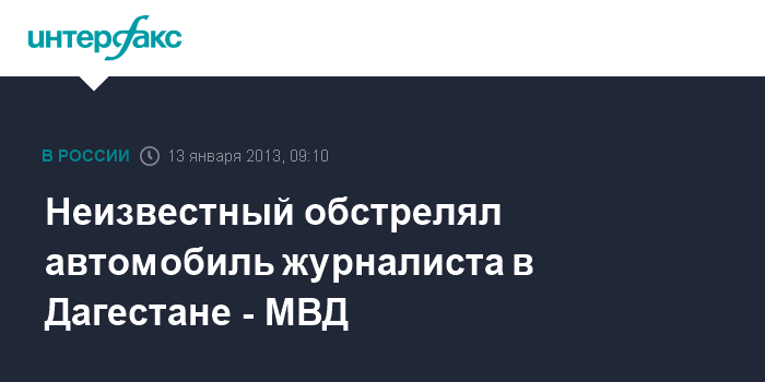 Махачкала. 13 января. ИНТЕРФАКС - Неизвестный обстрелял из огнестрельного оружия автомобиль заместителя главного редактора республиканского еженедельника "Новое дело" в поселке Семендер (Дагестан) в минувшую пятницу.