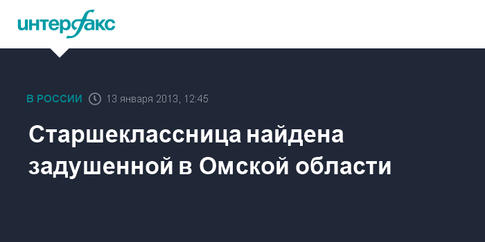 Омск. 13 января. INTERFAX.RU - Следственные органы возбудили уголовное дело по факту убийства 17-летней девушки, тело которой было обнаружено на улице неподалеку от железнодорожного вокзала омского города Называевск, сообщает пресс-служба регионального управления СК России.