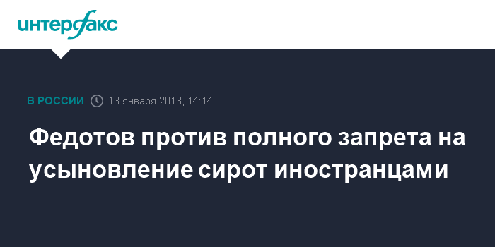 "Такое (иностранное - ИФ) усыновление можно запретить, но только после того, как будет закрыт последний детский дом в России", - сказал М.Федотов.