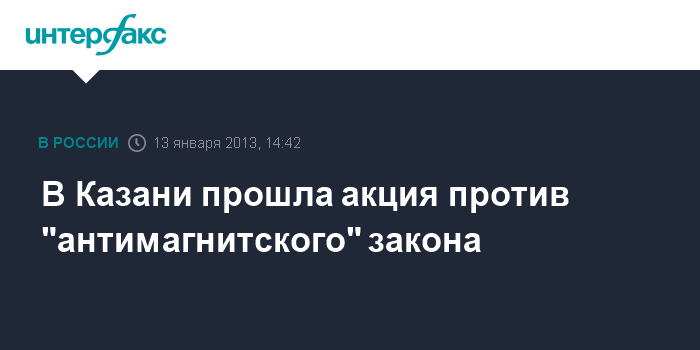 Казань. 13 января. INTERFAX.RU - Более 20 человек, по оценкам правоохранительных органов, приняли участие в пикете против закона, запрещающего американцам усыновлять российских детей, который прошел в воскресенье в центре Казани на пешеходной улице Баумана.