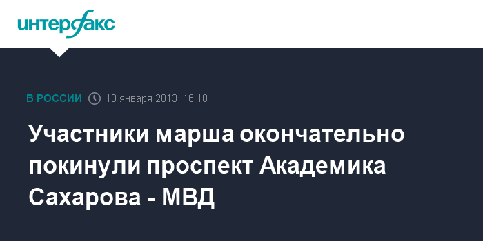 Москва. 13 января. INTERFAX.RU - Движение по проспекту Академика Сахарова восстановлено, сообщили "Интерфаксу" в пресс-службе ГУ МВД России по Москве. "Около 16 часов участники мероприятия окончательно покинули проспект Академика Сахарова. В настоящее время движение автотранспорта на нем восстановлено", - сказал сотрудник пресс-службы.