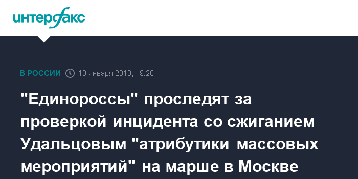 "Единороссы" проследят за проверкой инцидента со сжиганием Удальцовым "атрибутики массовых мероприятий" на марше в Москве