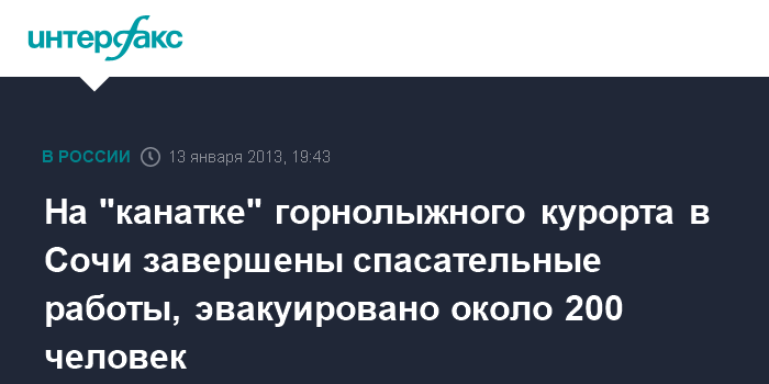 "Спасательные работы на горнолыжном курорте "Роза Хутор" завершены, со всех очередей канатки эвакуировано около 200 человек", - сказал собеседник агентства.