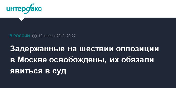 Москва. 13 января. ИНТЕРФАКС - Полиция отпустила всех задержанных на прошедшем в воскресенье в центре Москвы марше оппозиции против "антимагнитского" закона и за роспуск Госдумы.