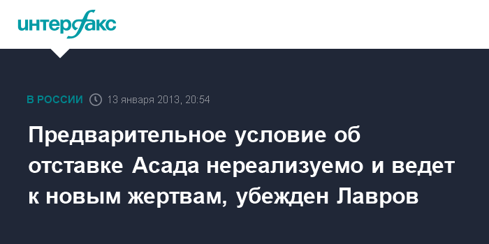 Предварительное условие об отставке Асада нереализуемо и ведет к новым жертвам, убежден Лавров