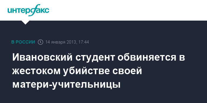 По версии следствия, вечером 9 января 2013 г. молодой человек во время ссоры с матерью - 49-летней учительницей школы №22 областного центра, - нанес ей ножом многочисленные удары в голову, грудь и живот. После этого он уехал отдыхать к знакомым в один из поселков Ивановской области.