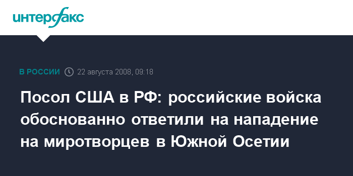 Посол США в РФ: российские войска обоснованно ответили на нападение на миротворцев в Южной Осетии