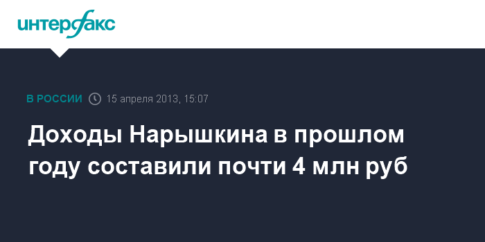 Доходы Нарышкина в прошлом году составили почти 4 млн руб