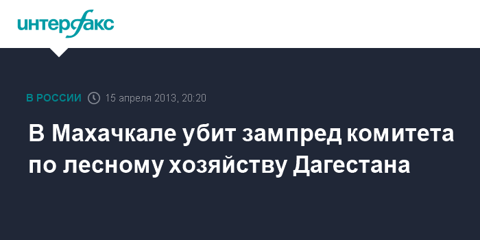 Махачкала. 15 апреля. INTERFAX.RU - Заместитель руководителя комитета по лесному хозяйству Дагестана Сайгидгусейн Омаргаджиев убит в понедельник вечером в Махачкале, сообщили агентству "Интерфакс" в Следственном управлении СКР по Дагестану.