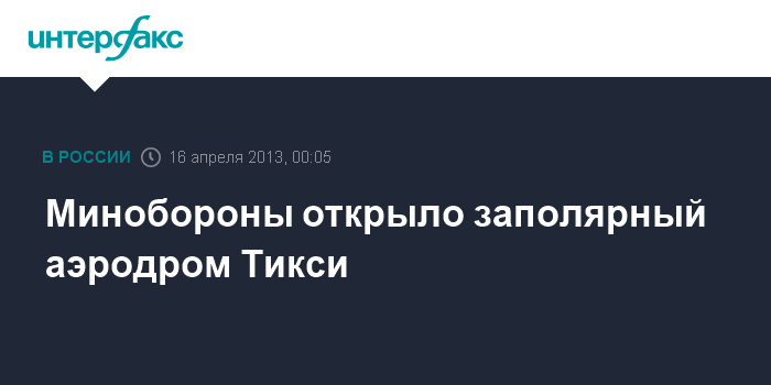 Москва. 16 апреля. INTERFAX.RU - Заполярный аэродром Тикси со вторника открыт к приему самолетов государственной авиации, информирует Минобороны РФ.