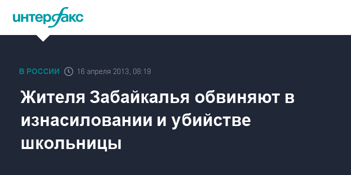 Чита. 16 апреля. INTERFAX.RU - В Забайкальском крае предъявлено обвинение 38-летнему жителю села Кокуй, подозреваемому в изнасиловании и убийстве девятилетней школьницы, сообщает во вторник пресс-служба краевого СУ СКР.