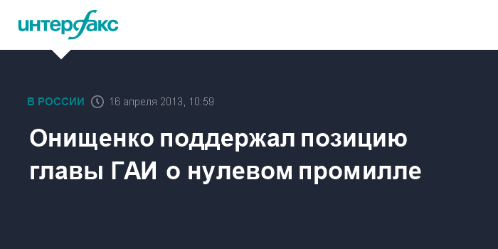 Москва. 16 апреля. INTERFAX.RU - Руководитель Роспотребнадзора, главный государственный санитарный врач РФ Геннадий Онищенко считает правильной позицию главы российского ГАИ Виктора Нилова о необходимости сохранения "нулевого промилле" для водителей.