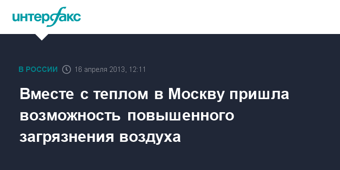 Вместе с теплом в Москву пришла возможность повышенного загрязнения воздуха