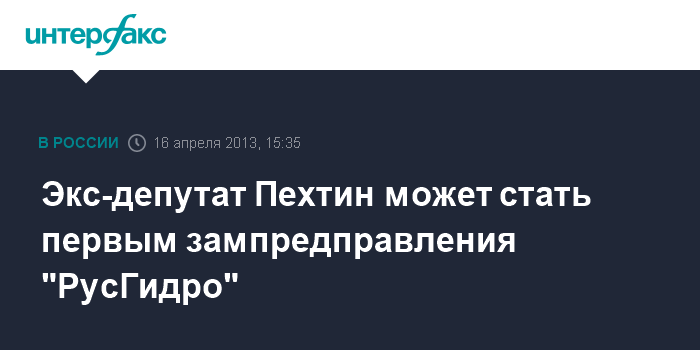 Экс-депутат Пехтин может стать первым зампредправления "РусГидро"