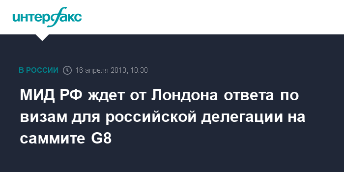 МИД РФ ждет от Лондона ответа по визам для российской делегации на саммите G8