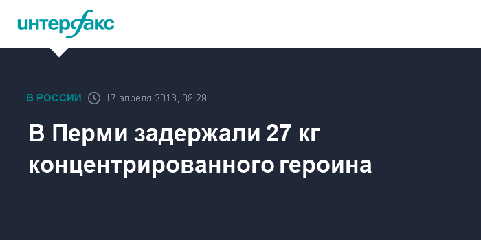 Пермь. 17 апреля. INTERFAX.RU - Сотрудники УФСКН изъяли в Перми 27 кг концентрированного афганского героина, который предназначался для поставки в Москву.