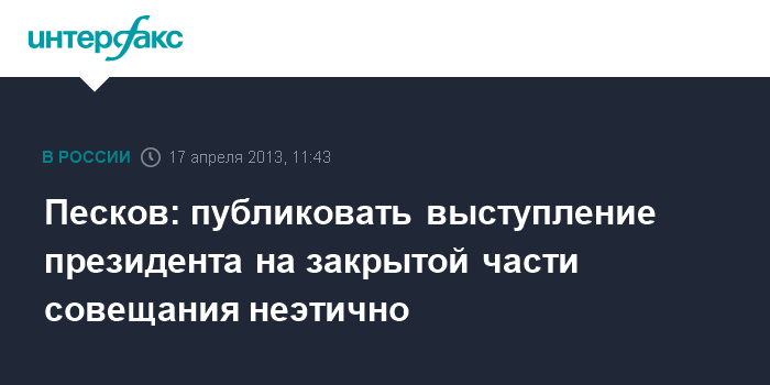 Песков: публиковать выступление президента на закрытой части совещания неэтично