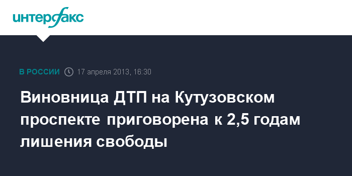 Виновница ДТП на Кутузовском проспекте приговорена к 2,5 годам лишения свободы