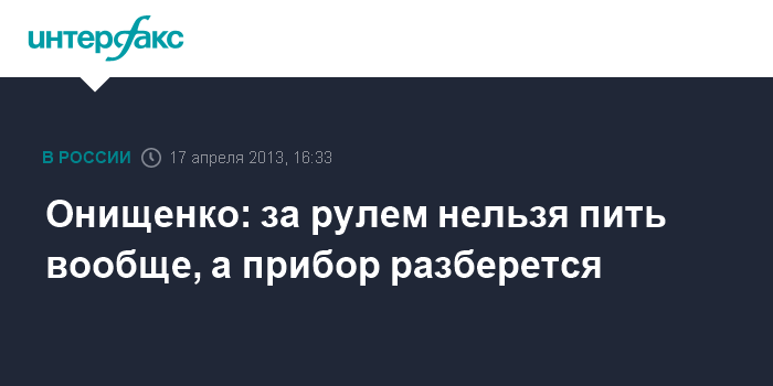 "Базовым является то, что сказал председатель правительства - садясь за руль, не надо пить ни в каких объемах. Что касается измерительных приборов, есть такое понятие, и профессионалы о нем знают, - технически достижимый уровень контроля. Абсолютного ноля нет в природе. Именно это и имеется в виду. Важно вообще не пить, а прибор разберется", - сказал Онищенко.