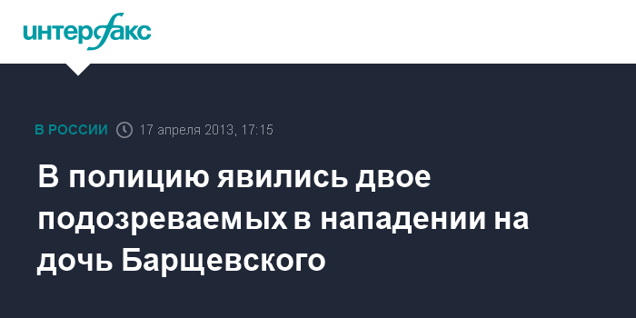 В полицию явились двое подозреваемых в нападении на дочь Барщевского