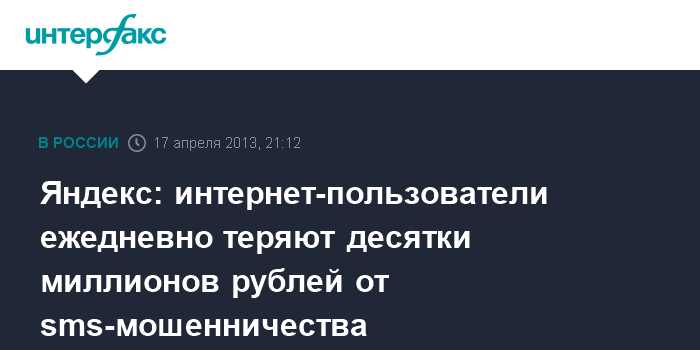 Яндекс: интернет-пользователи ежедневно теряют десятки миллионов рублей от sms-мошенничества