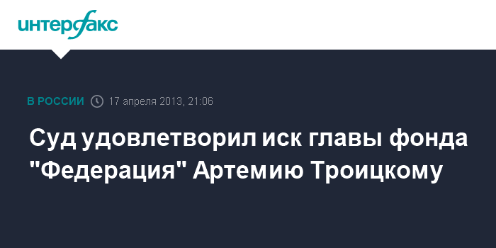 Суд удовлетворил иск главы фонда "Федерация" Артемию Троицкому