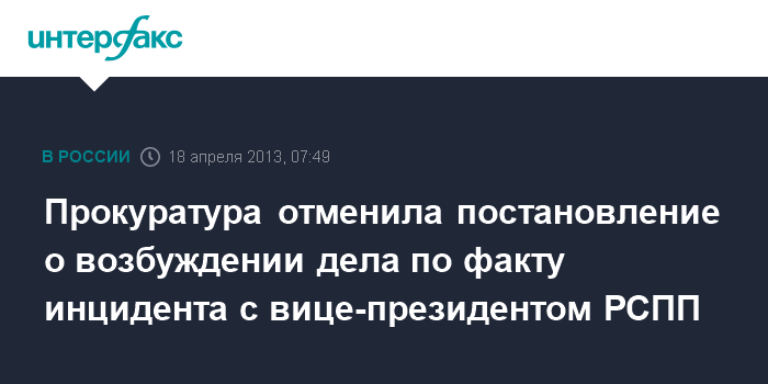 Прокуратура отменила постановление о возбуждении дела по факту инцидента с вице-президентом РСПП