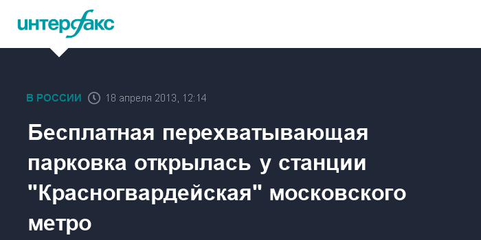 Москва. 18 апреля. INTERFAX.RU- Рядом со станцией "Красногвардейская" Замоскворецкой линии Московского метрополитена открылась перехватывающая парковка на 528 машиномест, сообщили "Интерфаксу" в пресс-службе метро в четверг.