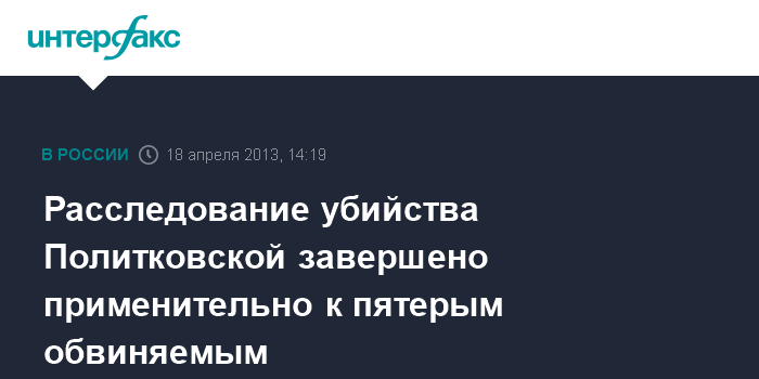 Москва. 18 апреля. INTERFAX.RU - Следственный комитет России сообщил о завершении расследования в отношении пятерых обвиняемых по уголовному делу об убийстве журналистки "Новой газеты" Анны Политковской.