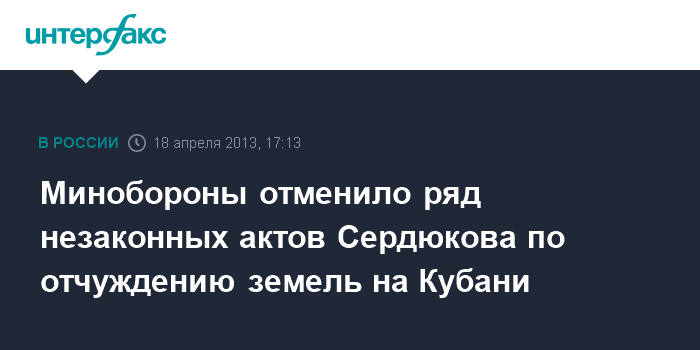 Москва. 18 апреля. INTERFAX.RU - Минобороны РФ отменило ряд незаконных решений экс-министра обороны Анатолия Сердюкова по передаче земель в Краснодарском крае обществу "Объединенный материальный склад", заявил в четверг журналистам директор департамента имущественных отношений министерства Дмитрий Куракин.