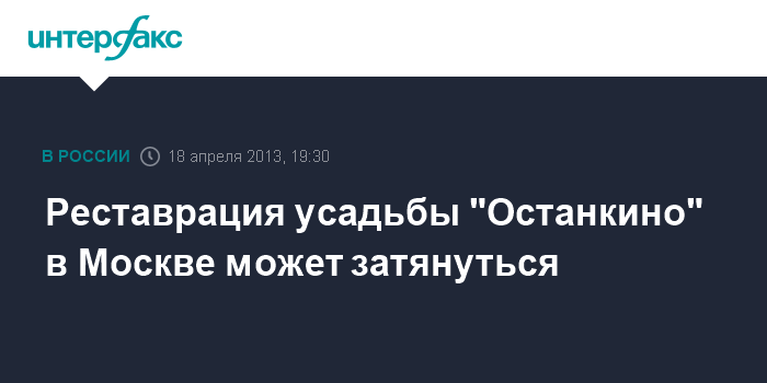 Москва.18 апреля. INTERFAX.RU - В настоящее время пока точно неизвестно, сколько времени займет реставрация усадьбы "Останкино", расположенная на северо-востоке столицы, однако она может продлиться шесть-семь лет.