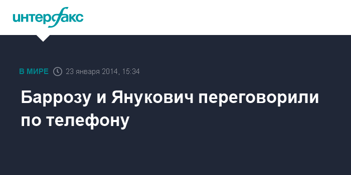 Брюссель. 23 января. INTERFAX.RU - Состоялся телефонный разговор президента Европейской комиссии Жозе Мануэля Баррозу и президента Украины Виктора Януковича.