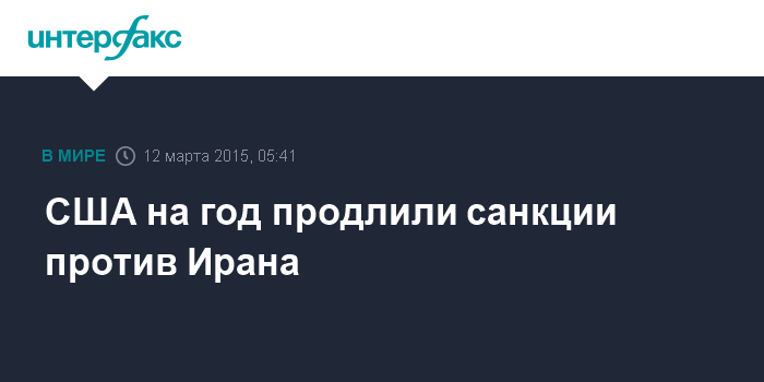 Москва. 12 марта. INTERFAX.RU - Президент США Барак Обама проинформировал лидеров двух палат американского конгресса о продлении еще на год санкций против Ирана, сообщил Белый дом.