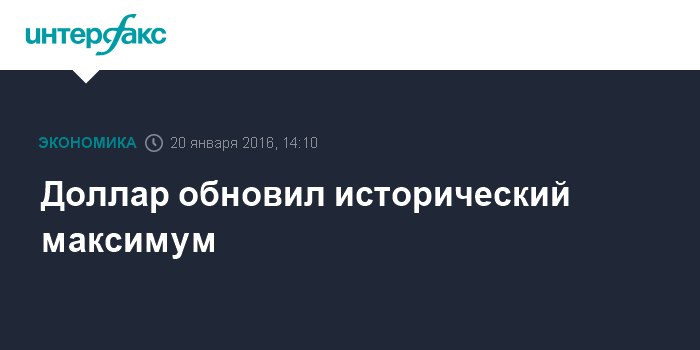 Москва. 20 января. INTERFAX.RU – – Доллар обновил исторический максимум на Московской бирже, установленный 16 декабря 2014 года, когда доллар поднимался до 80,1 рубля. В ходе торгов среды около 14:05 мск курс доллара взлетал до 80,179 рубля.