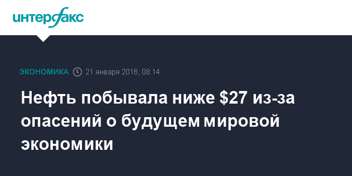 Нефть побывала ниже $27 из-за опасений о будущем мировой экономики