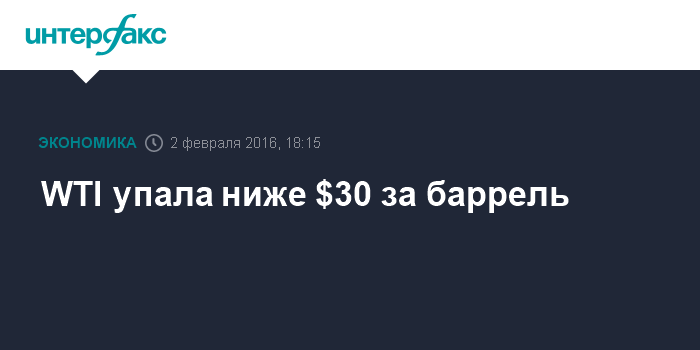 Стоимость мартовских фьючерсных контрактов на нефть WTI в ходе торгов на Нью-йоркской товарной бирже (NYMEX) опустилась на $1,72 (5,44%) - до $29,9 за баррель.
