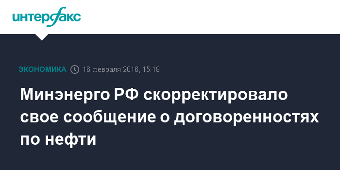 Москва. 16 февраля. INTERFAX.RU – Минэнерго РФ уточнило формулировку заявления по итогам встречи Александра Новака с министрами нефти Саудовской Аравии, Катара и Венесуэлы во вторник в Дохе.