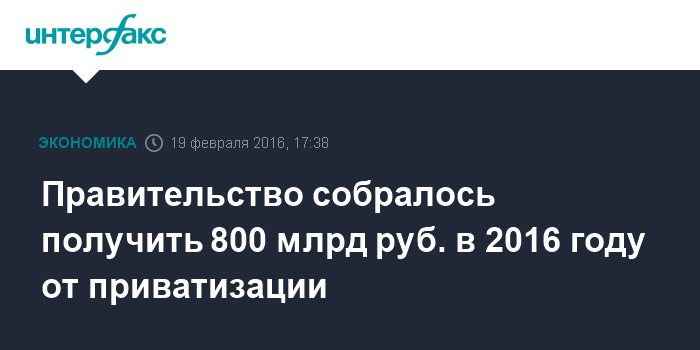 Правительство собралось получить 800 млрд руб. в 2016 году от приватизации