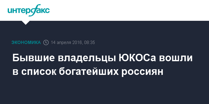 Бывшие владельцы ЮКОСа вошли в список богатейших россиян