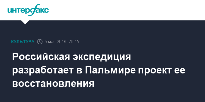 Москва. 5 мая. INTERFAX.RU - Министр культуры РФ Владимир Мединский сообщил журналистам, что в Пальмиру будет направлена специальная экспедиция для подготовки проекта поэтапного восстановления исторической части города.