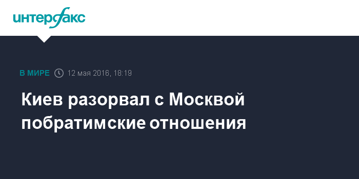 "В соответствии с решением Киевского городского совета от 11 февраля 2016 года... сообщаем о том, что в связи с военной агрессией РФ против Украины, аннексией АР Крым и оккупацией части территорий Донецкой и Луганской областей город Киев разрывает в одностороннем порядке все ранее подписанные договора про побратимство, партнерство и сотрудничество с городом Москва", - говорится в письме Прокопива в адрес правительства Москвы, копию которого он обнародовал в фейсбуке в четверг.
